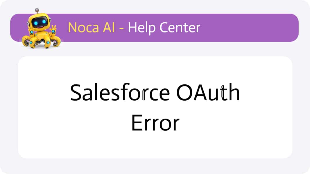 If you encounter an OAuth error while connecting Salesforce to another application (such as Noca AI), it usually means your connected app isn’t installed, or the necessary permissions haven’t been set up for your user.